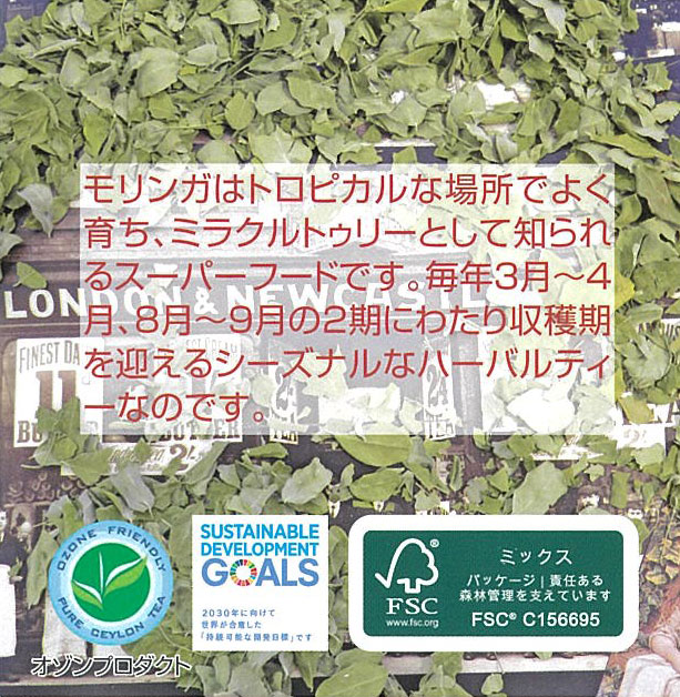 【新作】モリンガレモンアールグレイ ノンカフェインティー モリンガ ハーブティー 【モリンガ レモン アールグレイ】 レモンとアールグレイの香りを モリンガにのせた、とてもおいしい ハーブティーなのです。 商品イメージ 商品カテゴリ:cube box, ノンカフェイン サイズ:8cm×8cm×8cmの立方体 内容:2g×10包のティーバッグが入っています。 JAN:4580124136985 販売価格:920yen+tax (税込価格:972yen) 掲載日:2025.12.19 フレーバータグ: