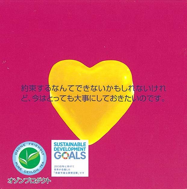 【新作】幸せの約束 先のことはわからないけれど今は… 【幸せの約束】 *7ベリー・マウンテンマンゴー・カスタードバニラのブレンド 7つのベリーにマウンテンマンゴーをブレンドした、 とっても女性の大好きな香りになりました。 一般のお客様は茶葉150g〜 2,550円(税別) 業務用でご利用の方は300g単位で承ります。 価格や条件などはこちらのお問い合わせフォームよりご相談ください。 商品イメージ 商品カテゴリ:cube box, フルーツバリエーション, リーフタイプ サイズ:8cm×8cm×8cmの立方体 内容:2.5g×10包のティーバッグが入っています。 JAN:4580124137234 販売価格:900yen+tax (税込価格:972yen) 掲載日:2026.02.21 フレーバータグ:7ベリー / カスタードバニラ / マウンテンマンゴー
