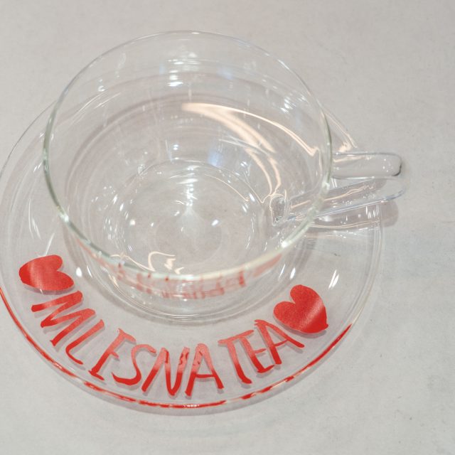 ムレスナティーオリジナルのガラス製ティーカップ&ソーサー。