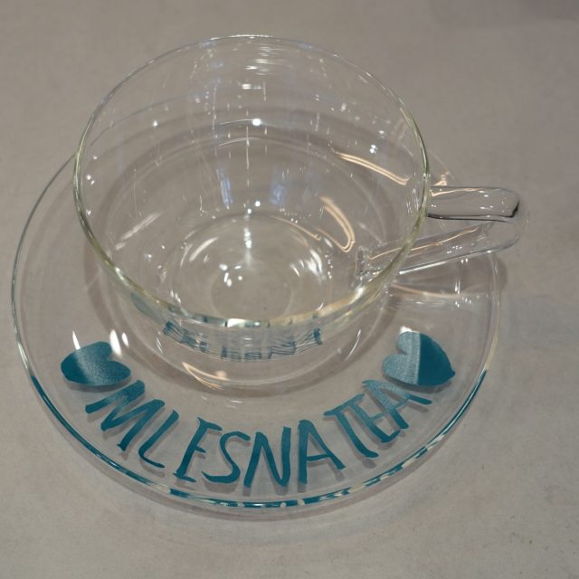 ムレスナティーオリジナルのガラス製ティーカップ&ソーサー。